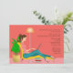 A feminine retirement invitation showing a woman in a lounge chair with a laptop computer. A floor lamp and potted plant and a stack of books surround her. Perfect for a retirement party celebration. (Vector.me plant in pot, Vecteezy.com Lamps by free vector). The card is easy to customize with your wording, font, font color, paper shape options and choice of six paper types.
