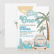 Celebrate your little ones big milestone with this vibrant beach and surfing themed first birthday invitation. Featuring playful palm trees, ocean waves, a retro surf van, and sunny coastal vibes, this design is perfect for a tropical party. The colorful artwork and cheerful details set the tone for a fun-filled celebration, while the customizable text makes it easy to personalize for your event. Ideal for beach lovers, surf fans, and families looking to host a unique seaside-inspired birthday bash.