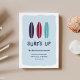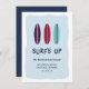 Cool surfing themed moving announcements let friends and family know about your new beachside abode! Design features a trio of surfboards in navy, red and aqua, with "surf's up!" beneath.Personalize with your new address and family name.