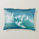 NewParkLane - Accent Pillow, with a photo of beautiful aqua blue ocean waves, with 'Surf's Up' quote in fun script typography.