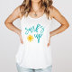 Surf's up! Celebrate summer with our cute quote tank featuring "surf's up" in vibrant teal handwritten style typography with a bright yellow sun illustration.