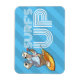 Get this magnet as a fun reminder of sunny times for the fridge door, featuring an ice cool polar bear enjoying a cold drink and a cooling hand fan while riding a bright yellow surf board. A chilled out design for the summer; You could change the default "SURF'S UP" text to your preferred caption.