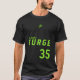 My 11 yo wore adult XL (5’7” 165#). The 8yo is small framed. She wore adult small and tied it in the back. Grandma wore adult large with long sleeve shirt underneath. Tall girl adult medium. Dark haired male adult large. Good quality dark Heather gray, Gildan brand shirt. -it was next up from basic choice and cost about $20 per shirt. Not too thick or thin. Washed and dried well, no major shrinkage. Not see-through. Can wear a bra under it fine. Screen print is just as shown and well done, front and back.