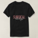My 11 yo wore adult XL (5’7” 165#). The 8yo is small framed. She wore adult small and tied it in the back. Grandma wore adult large with long sleeve shirt underneath. Tall girl adult medium. Dark haired male adult large. Good quality dark Heather gray, Gildan brand shirt. -it was next up from basic choice and cost about $20 per shirt. Not too thick or thin. Washed and dried well, no major shrinkage. Not see-through. Can wear a bra under it fine. Screen print is just as shown and well done, front and back.