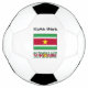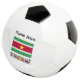 Surinamese flag, on a soccer ball, with two green horizontal stripes, two smaller white stripes, a large red stripe in the center and a centered yellow star. It shows with the word SURINAME below, in the colors of the flag. A yellow star is in the center of the name or word. Both the flag and the letters have a black outline. Personalize with your name, or, add someone else's for a customized gift.