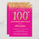 Surprise 100th Birthday Hot Pink and Gold Glitter Invitation