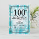 Surprise 100th Birthday Invitation Teal Glitter
