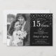 Surprise 15th Anniversary with Photo Black Silver Invitation