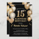 Surprise 15th Birthday Black and Gold Balloons Invitation