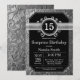 Surprise 15th Birthday Black and Silver Glitter Invitation