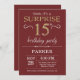 Surprise 15th Birthday Burgundy and Gold Glitter Invitation