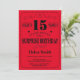 Plain white envelopes are included with paper invitations and will come to fit the invitation size you select. If you don’t need the envelopes, you may choose to not receive them by selecting the dropdown below "Envelopes" and choosing "None." If you’d like to have a design on your envelopes, you can browse all of these available envelopes to find the design that complements your Surprise 15th Birthday Invitation Black And Red.