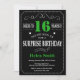 Surprise 16th Birthday Black and Green Chalkboard Invitation