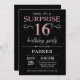 Surprise 16th Birthday Black and Rose Pink Gold Invitation