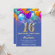 Surprise 16th Birthday Blue and Gold Balloons Invitation
