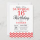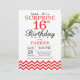 Surprise 16th Birthday Invitation with Red Chevron. Black and White. Kids Birthday. Boy or Girl Bday Invite. For further customization, please click the "Customize it" button and use our design tool to modify this template.