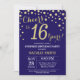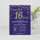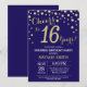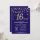 Surprise 16th Birthday Navy Blue and Gold Diamond Invitation