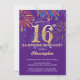 Surprise 16th Birthday Purple and Gold Firework Invitation