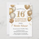 Surprise 16th Birthday White and Gold Balloons Invitation
