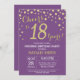 Surprise 18th Birthday Purple and Gold Diamond Invitation