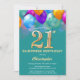 Surprise 21st Birthday Teal and Gold Balloons Invitation