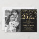 Surprise 25th Anniversary with Photo Black Gold Invitation