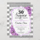 You can pick to download your Surprise 30th Birthday Silver White Purple Invitation from 4 file types: PNG, JPG, Standard PDF, and Print PDF. These 4 file formats have been selected so they cover all your inviting needs. PNG and JPG are great for sending your invitation digitally and PDF and Print PDF are great if you want to print your invitation yourself.
