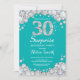 Yes, you can print on the back of your invitation for free! Most designs already have a corresponding design on the back that can be personalized using the Design Tool and going to Layers. This is a great way to communicate more information or further personalize your Surprise 30th Birthday Teal And Silver Invitation. The option is really up to you.