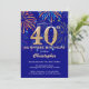 Surprise 40th Birthday Navy Blue & Gold Firework Invitation