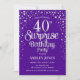 Surprise 40th Birthday Party - Silver & Purple Invitation