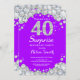 Surprise 40th Birthday Purple and Silver Diamond Invitation