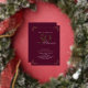 This beautiful invitation features hand lettered calligraphy artfully presenting 'fifty' in luxurious hand lettering against a burgundy background, adorned with delicate swirls in the corners top and bottom in real gold foil, along with the name and the number 50. This image will have all your guests excitedly anticipating your fabulous fiftieth festivities!