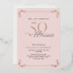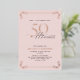 This beautiful invitation features hand lettered calligraphy artfully presenting 'fifty' in luxurious hand lettering against a pink background, adorned with delicate swirls in the corners top and bottom in real rose gold foil, along with the name and the number 50. This image will have all your guests excitedly anticipating your fabulous fiftieth festivities!