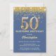 Surprise 50th Birthday Blue and Gold Glitter Invitation