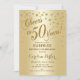 Plain white envelopes are included with paper invitations and will come to fit the invitation size you select. If you don’t need the envelopes, you may choose to not receive them by selecting the dropdown below "Envelopes" and choosing "None." If you’d like to have a design on your envelopes, you can browse all of these available envelopes to find the design that complements your Surprise 50th Birthday Party Gold Invitation.