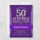 Surprise 50th Birthday Party - Silver Purple Invitation
