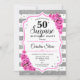 You can pick to download your custom Surprise 50th Birthday Silver White Pink Invitation in any of the following 4 file types: PNG, JPG, Standard PDF, and Print PDF. These 4 file formats have been selected so they cover all your inviting needs. PNG and JPG are great for sending your invitations online. All of these file formats are great if you want to print your invitations yourself. However, having unlimited downloads allows you to download all four formats for maximum versatility. You can even apply your digital download design to other popular products on Zazzle.