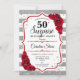 Yes, you can print on the back of your invitation for free! Most designs already have a corresponding design on the back that can be personalized using the Design Tool and going to Layers. This is a great way to communicate more information or further personalize your Surprise 50th Birthday Silver White Red Invitation. The option is really up to you.