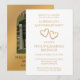 Create an elegant, faux gold script invitation with this surprise 50th wedding anniversary party invitation template. Add a photo to the back of the invitation for a lovely personalized arched photo invitation. Easily personalize this stylish party invitation by adding the couple's names, party date and time, location and other details you choose. All the modern, simple typography is editable. "Celebrating 50 Years of Marriage" can be customized for any anniversary year. I created the two golden gradient hearts with impressions of buds and leaves for a botanical feel. The unique golden tan gradient hearts are nestled next to each other for a romantic, lovely touch. See my golden 50th wedding anniversary collection for matching party table decorations and favors. Create a beautiful memorable party to honor a life long commitment of love.