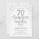 Plain white envelopes are included with paper invitations and will come to fit the invitation size you select. If you don’t need the envelopes, you may choose to not receive them by selecting the dropdown below "Envelopes" and choosing "None." If you’d like to have a design on your envelopes, you can browse all of these available envelopes to find the design that complements your Surprise 70th Birthday Party Silver White Invitation.