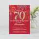 Surprise 70th Birthday Red & Gold Rainbow Firework Invitation