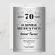 You can pick to download your Surprise 70th Birthday Silver Black Invitation from 4 file types: PNG, JPG, Standard PDF, and Print PDF. These 4 file formats have been selected so they cover all your inviting needs. PNG and JPG are great for sending your invitation digitally and PDF and Print PDF are great if you want to print your invitation yourself.