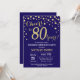 Surprise 80th Birthday Navy Blue and Gold Diamond Invitation