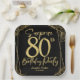 Surprise 80th Birthday Party Black & Gold Glitter Paper Plates