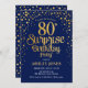 Surprise 80th Birthday Party - Navy & Gold Invitation