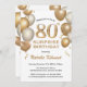 Surprise 80th Birthday White and Gold Balloons Invitation
