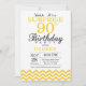Plain white envelopes are included with paper invitations and will come to fit the invitation size you select. If you don’t need the envelopes, you may choose to not receive them by selecting the dropdown below "Envelopes" and choosing "None." If you’d like to have a design on your envelopes, you can browse all of these available envelopes to find the design that complements your Surprise 90th Birthday Invitation Yellow Chevron.
