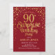Surprise 90th Birthday Party - Red & Gold Invitation