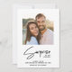 Share the surprise of your engagement in style with this cute, modern black and white engagement announcement, featuring your favorite photo, and hand lettered script. The back of the announcement displays another engagement photo. Easily personalized. Copyright Anastasia Surridge, all rights reserved.