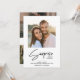 Share the surprise of your engagement in style with this cute, modern black and white engagement announcement, featuring your favorite photo, and hand lettered script. The back of the announcement displays 3 more engagement photos. Easily personalized. Copyright Anastasia Surridge, all rights reserved.
